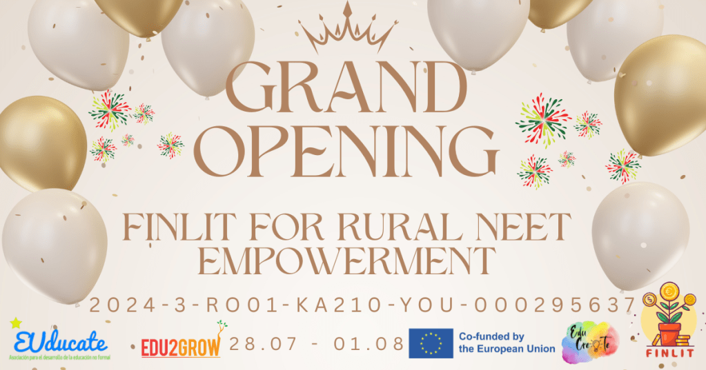 The project “FINLIT for Rural NEET Empowerment” addresses an urgent and real need: increasing the level of financial literacy and resilience among disadvantaged young people from rural or marginalized communities, including Ukrainian refugees affected by war, economic crises, and social exclusion. Through a strategic partnership between Educreate Association (Romania), Edu2Grow (Portugal), and EUDUCATE (Spain), this Erasmus+ KA210-YOU project proposes an innovative and inclusive approach to youth empowerment through financial education, digitalization, and active community engagement.